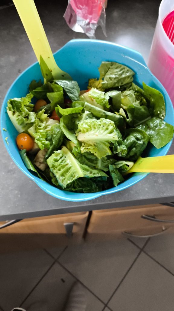Die ersten geernteten Salatblätter wurden von Mariell, Sophie und Lia nun mit nach Hause genommen und zu einer appetitlichen Salatbeilage verarbeitet. Bald ist der Mangold so weit… mal sehen, was daraus Leckeres gekocht wird.