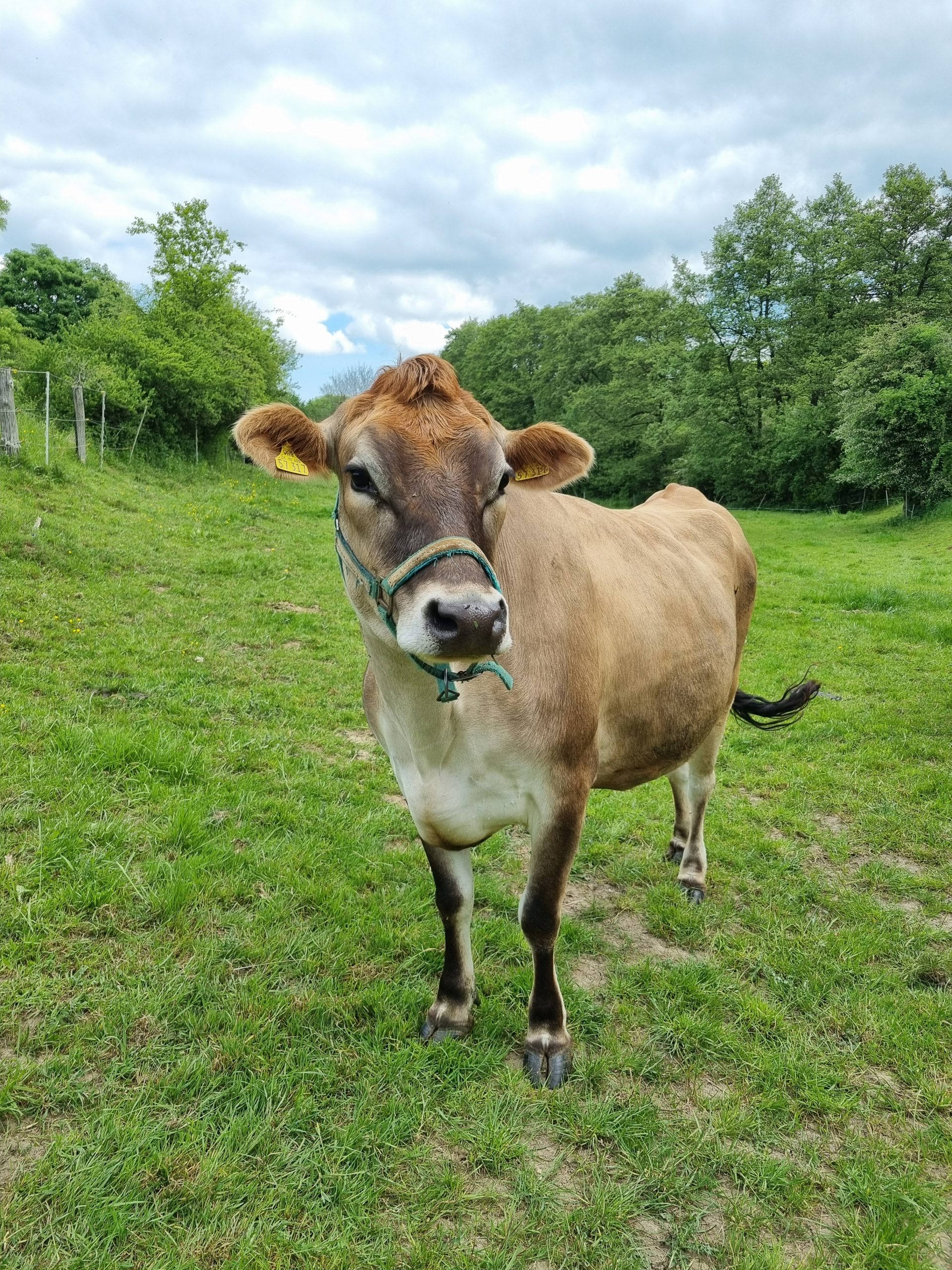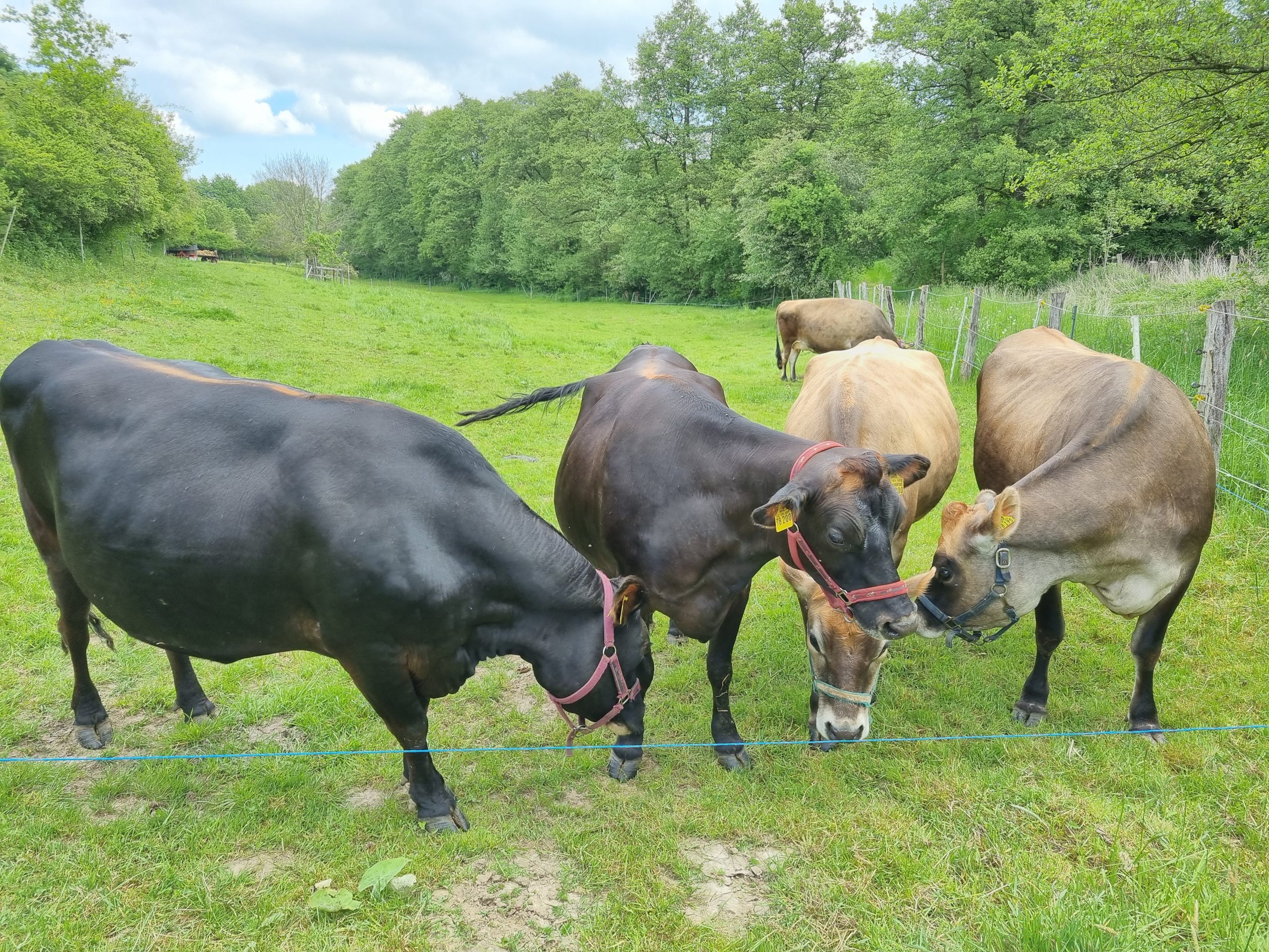 Am Dienstag (20.05.25) war es soweit und der WPK Glück der siebten Klassen machte sich auf den Weg… Wir besuchten Maren Cuckson und ihre fünf Jerseyrinder vom Flütjerhof in Dransfeld. Denn überlegt man, was einen glücklich macht, so wird doch von vielen der Kontakt zu Tieren genannt.