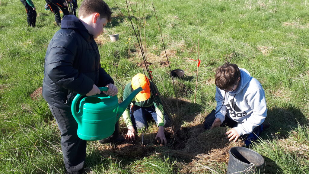 In enger Zusammenarbeit mit dem Förderverein Bührener Schedetal fuhren eine Gruppe SchülerInnen unseres 6. Jahrgangs nach Bühren und beteiligten sich an einer Pflanzaktion am 22.04.26, dem internationalen „Tag der Erde“.