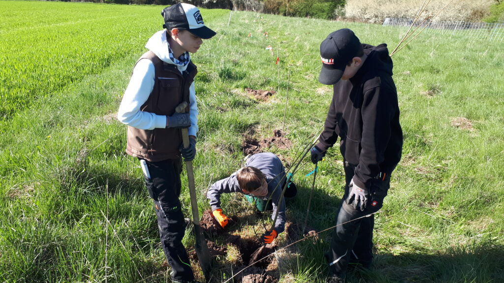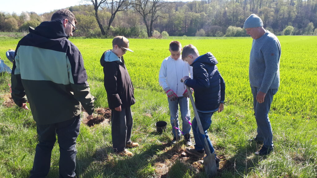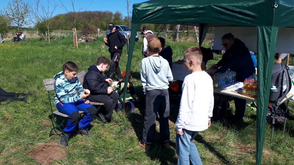 Fleißig engagierten sich die Kinder und Jugendlichen beim Graben und Pflanzen im zur NABU-Stiftung gehörenden Schutzgebiet. Hier wurde ein „Altgrasstreifen“ mit jungen Bäumen versehen. Zum Abschluss spendierte der Verein einen verdienten gemeinsamen Imbiss – dann ging es durch den „Feentunnel“ wieder auf den Heimweg.