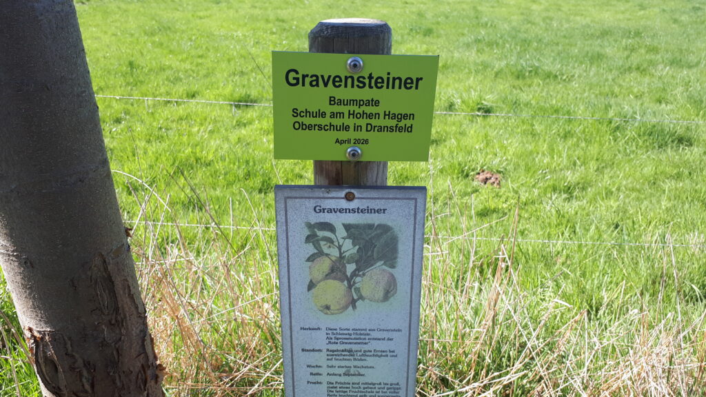 Auch eine Patenschaft für einen Baum – Gravensteiner, eine alte Apfelsorte – wurde von der Schule am Hohen Hagen übernommen: