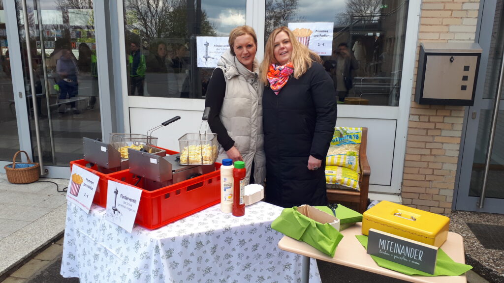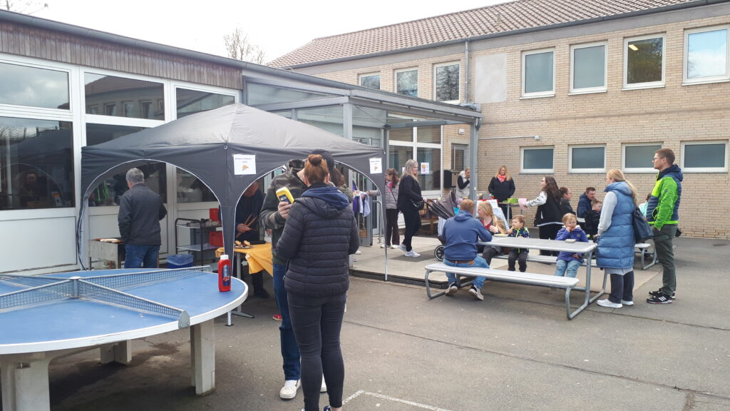 Ein kurzer Stopp beim Süßigkeiten- oder Crepesstand bekämpfte den kleinen Hunger. Am Bratwurststand oder in der Mensa bei Kaffee und Kuchen, der so zahlreich von backfreudigen Eltern gestiftet wurde, konnte man sich ausführlich stärken, mit Eltern anderer Kinder, den Schülerinnen und Schülern und den Lehrerinnen und Lehrern der Schule ins Gespräch kommen und sich über die vielen Eindrücke austauschen.